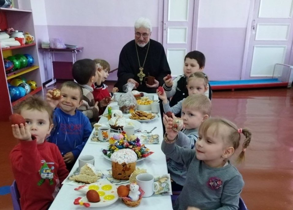 В дни Светлой седмицы, 14 апреля, в Радушской школе состоялась встреча настоятеля прихода храма святого великомученика Георгия Победоносца аг. Красный Берег протоиерея Петра Петрушенко с учащимися 1–4 классов. Священник напомнил ребятам о значении Великого поста как времени, когда человек учится внимательнее смотреть на себя: вспоминать свои поступки, замечать, кого обидел, где был неправ, и искренне просить прощения. Основное внимание было посвящено рассказу о Светлом Христовом Воскресении, главном празднике христиан, в котором открывается победа Жизни над смертью. Узнали дети и о событиях Входа Господня в Иерусалим, а также о том, почему в русской традиции пальмовые ветви были заменены вербой. Завершилась встреча по-праздничному тепло: детям вручили кулич и крашеные яйца. Затем протоиерей Пётр Петрушенко отправился к воспитанникам Радушского детского сада. Здесь пасхальная встреча продолжилась уже через игру, чаепитие и живое детское участие. Малыши с радостью играли в традиционные «битки», катали крашеные яйца, смеялись и наперебой делились впечатлениями. Поздравляя детей с праздником Воскресения Христова, священник пожелал им расти добрыми, послушными и внимательными к своим близким. Такие встречи важны именно своей простотой. Через слово, жест, общий стол и детскую радость праздник входит в память не как рассказ о далёком событии, а как живая школа добра, благодарности и света.