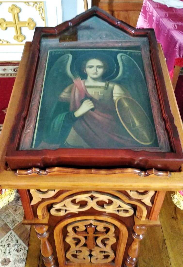 Главная святыня Храма – надвратная икона Архистратига Михаила, обнаруженная после войны на развалинах сёстрами Бересневыми — Софией и Любовью. Икона находилась в их доме до 2006 года. После смерти Софии святыню передали в храм. При реставрации иконы был установлен ее возраст: эксперт датировал написание иконы 1903 – 1905 гг.