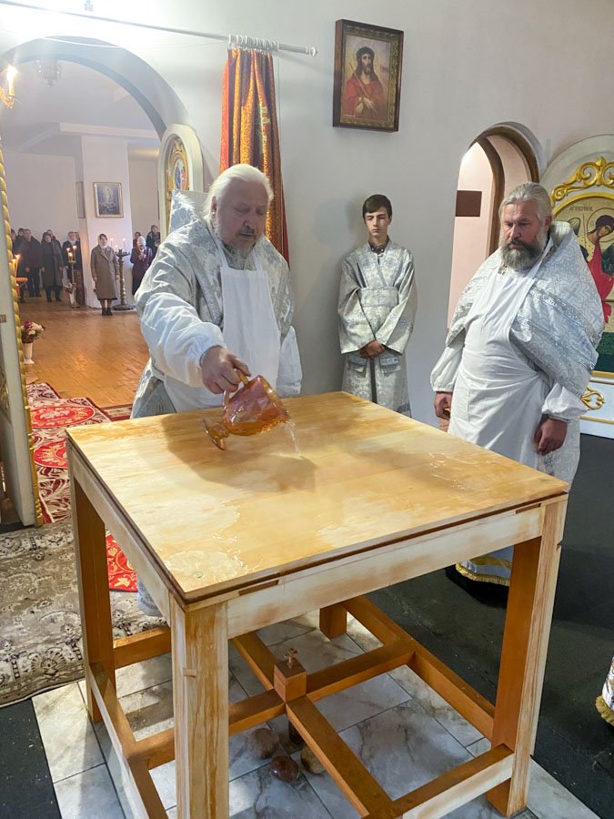 Регулярные Богослужения в храме начались с 2004 года. В течение последних лет собственными силами проводится реконструкция здания, — внутри и снаружи. Она продолжается до сегодняшнего дня. На снимках — внутреннее убранство храма до 2013 года и в 2014 году.