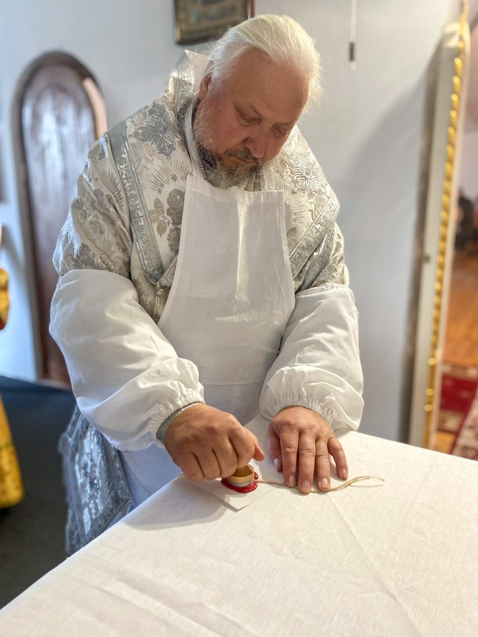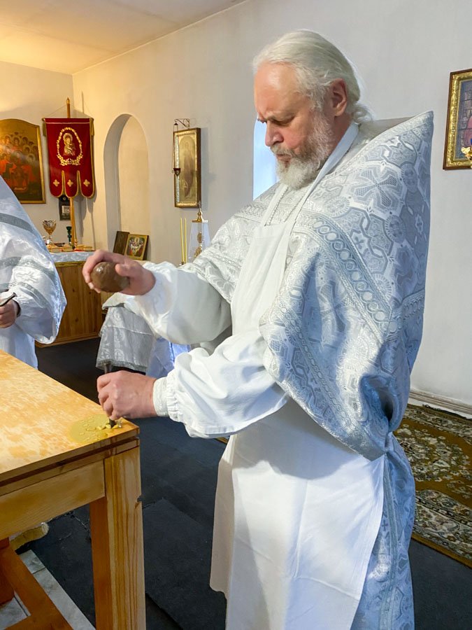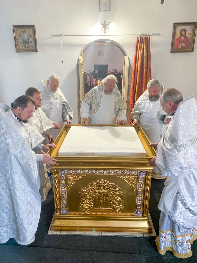 За литургией Его Преосвященству сослужили: секретарь Гомельской епархии протоиерей Георгий Алампиев, благочинный Жлобинского церковного округа протоиерей Василий Пилипенко и настоятель храма протоиерей Андрей Москаленко.